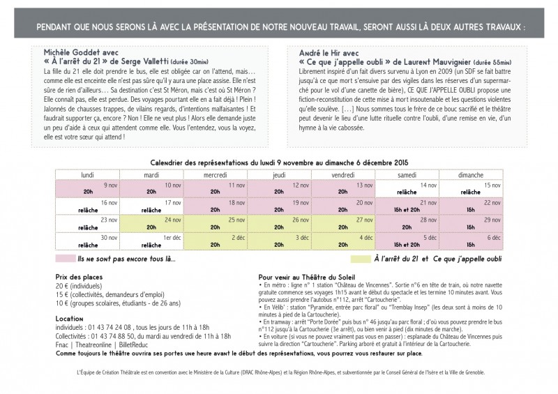DU 9 NOVEMBRE AU 6 DÉCEMBRE 2015 AU THÉATRE DU SOLEIL - CARTOUCHERIE 75012 PARIS