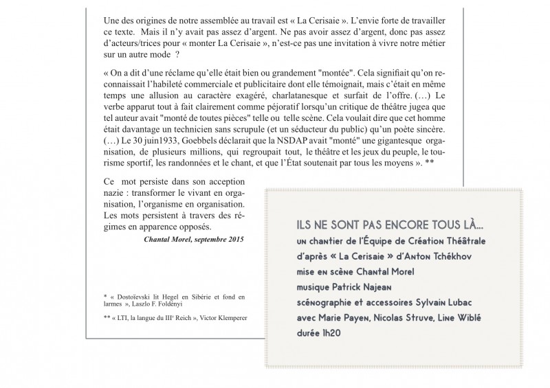 Conception et mise en scène Chantal Morel